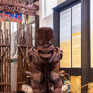 Replica carving of Te Rauparaha’s canoe prow.