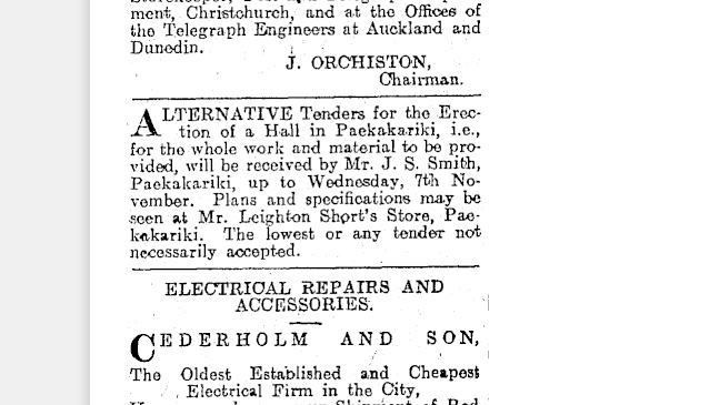 At the end of World War 1, £400 was still owing on the hall. Mr. J.S. (Jack) Smith, a St Peters’ Church parishioner, and the largest local land owner with holdings running from Pukerua Bay to McKays Crossing, loaned the required amount to the community. Mr. Smith was a major benefactor of Paekākāriki. The money was repaid within four years by fund-raising whist drives and dances.