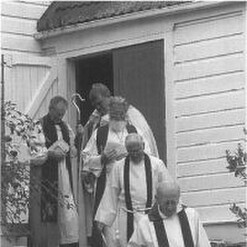 In 1959, a three-inch thick concrete floor was laid in the basement, electric hot points and lights were installed and, with the assistance of parishioners, enough money was raised to install a small kitchen. The Ladies Guild, a group of senior women parishioners, which included Mrs. Tutt, Mrs. Campbell, Mrs. Richardson, Miss Jenniss, Mrs. Owens, held card afternoons to raise the money to pay for a Zip water heater. In 1979, carpet tiles were laid in the basement.